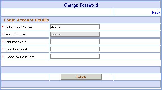 Suppose you want to change Password in your account. Here are the steps to follow:1- Modified the User Name if needed. It is User Name of Person logging in.