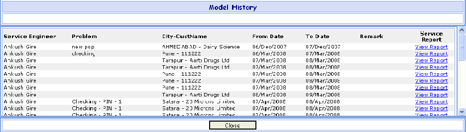 Suppose you Want to see the Service Report of Manish Service Engineer.