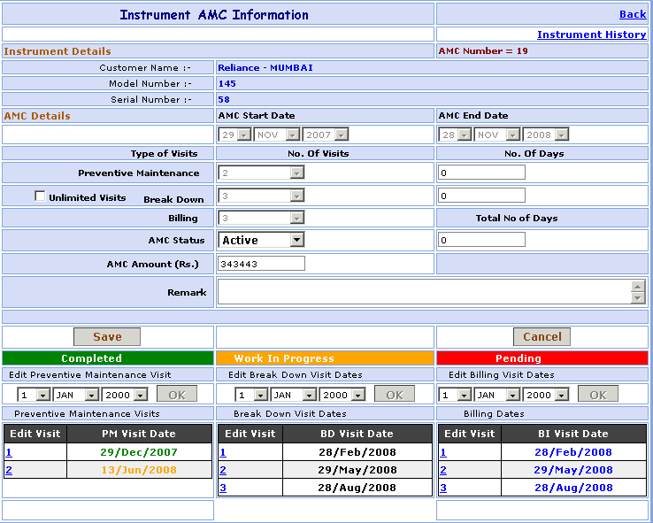 3- Click on Cancel button to cancel the AMC Information and clear all the fields to enter New AMC Information.