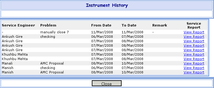 Suppose you Want to see the Service Report of Manish Service Engineer.